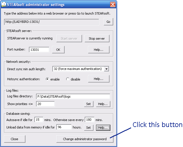 You do not use this Customer ID or password once you are using your installed copy of STEARsoft - you then use the passwords described below. Your Customer ID appears in your registration information; shown on the Palm Handheld version of STEARsoft. This is to remind you which Customer ID to use if you need to update or upgrade a license using the STEARsoft website. If you obtain extra licenses for Palm Handhelds, each license (after the first one) will have it's own associated Customer ID and password. If you forget what your Customer ID or password is (and have lost the original email with them in), you can use the Administrator username and passwordThis must be set using the STEAR Administrator program (after you've installed STEARsoft): If you forget this password, you can simply use STEAR Administrator to set it again. You use this administrator username and password when accessing the account management pages: