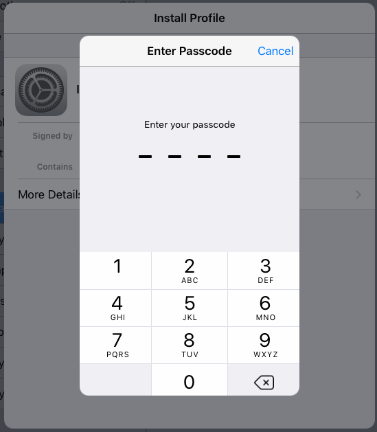 You'll then be prompted for your iPad pin (the one you use to unlock the device), so enter your pin: